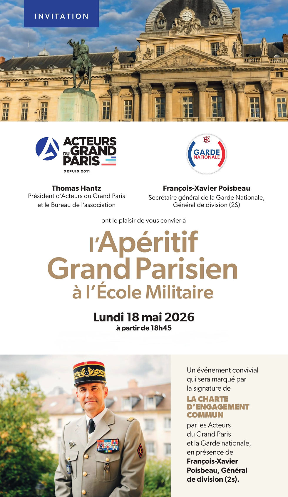 Cet événement convivial sera marqué par un moment rare : la signature de la charte d’engagement commun entre Acteurs du Grand Paris et la Garde Nationale, en présence du Général de division, François-Xavier Poisbeau.